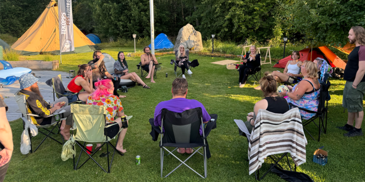 Vi blir sponsrade av High on Life Vandring med ett stort 15-mannatält som man kan sova i. Det finns utöver det utrymme för egna tält på festivalområdet, men då får ni säga till så vi kan avgöra om det finns plats kvar. Detta kallas "Terräng camping"